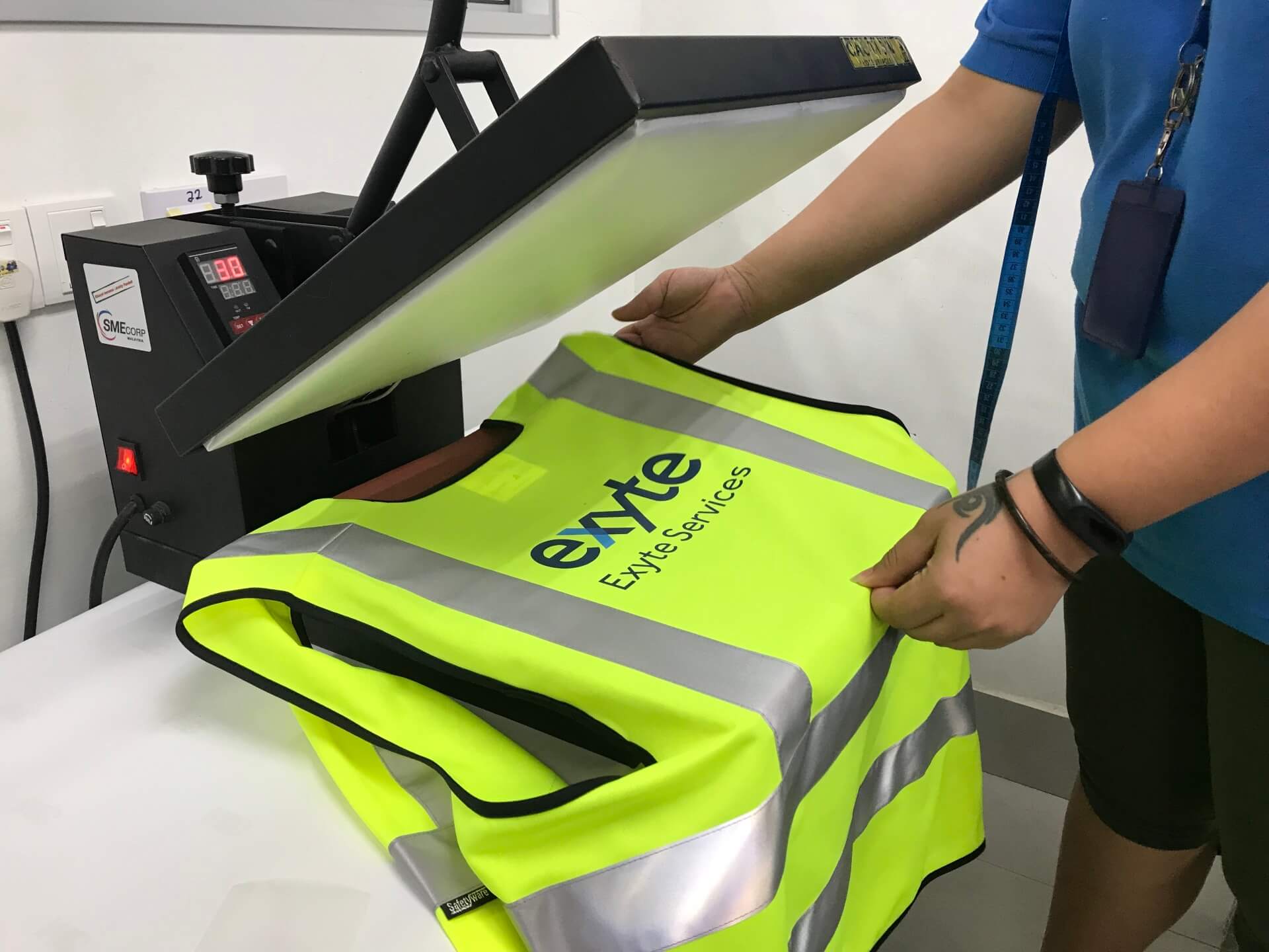 Heat transfer printing is more popular nowadays because heat transfer printing is cost effective, long lasting, better in quality and takes shorter production time. At Safetyware, with the help of our professional team and the incorporation of our modern technology machine, we can provide heat transfer printing service for your professional garments, as well as help you to customize design that is suitable to your needs.
